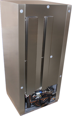 Modular Upright 7 cu/ft Refrigerator 2 cu/ft Freezer, 24" Wide X 25" Deep X 52" High, 115V, 60 Hz, 1 Phase, 404a Refrigerant, constructed of heavy gauge type 304 stainless steel with automatic defrost, high-low-high temperature alarm, and stainless steel shelving included. Available in hinge right or hinge left. Positive latches with magnetic back-up are included on all standard cabinets to assure positive latching and sealing. Alternative grades of stainless steel, electrical voltages, and refrigerants available upon request.